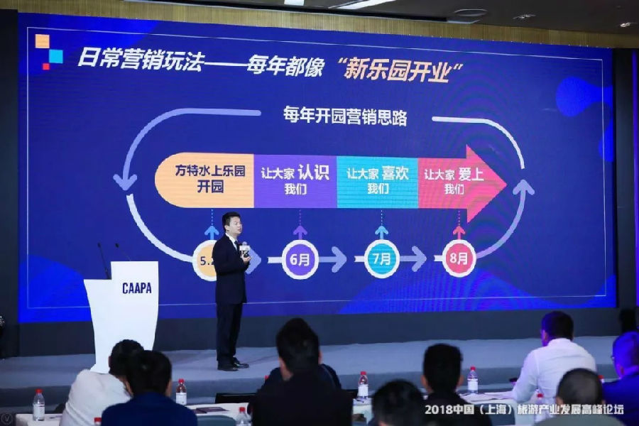 10月20日,蕪湖方特副總經理佟興發表題為《水上樂園的市場營銷》的主題演講,分享了蕪湖方特旅游度假區開展水上樂園市場營銷的經驗。他表示,蕪湖方特水上樂園開業至今,持續實現游客量和營收的雙增長,這得益于公司注重實施多元化營銷策略,并不斷提升服務品質,在持續吸引游客的同時,有效提升了重游率。
