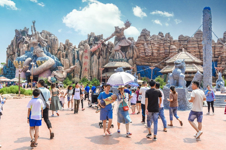 首批到來的客人使園區變得十分熱鬧,各處都能聽到游客們的歡笑聲。在各大主題游樂項目前,游客絡繹不絕,《孟姜女》、《牛郎織女》、《九州神韻》、《女媧補天》等室內文化體驗項目尤其受到親子家庭的歡迎。